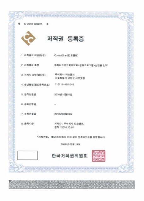 ControlOne(컨트롤원) 저작권 등록