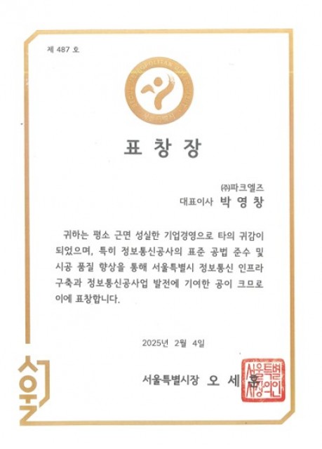 서울특별시장 표창장