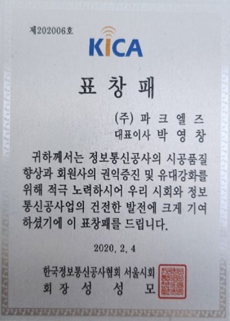 한국정보통신공사협회 표창패
